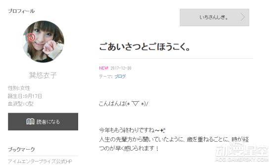 巽悠衣子 声优 介绍 生日 经历 留言 酷乐米
